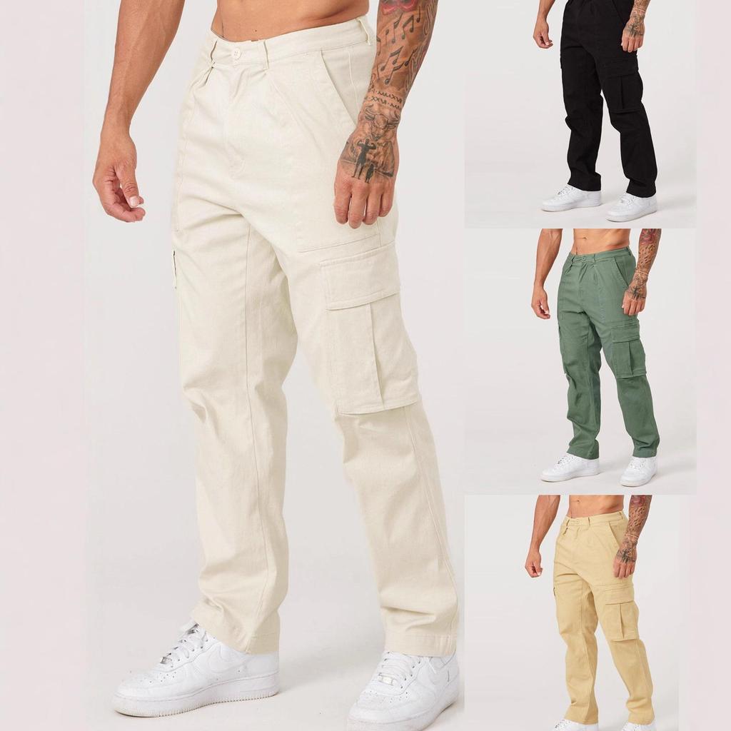 Men's Autumn Patchwork Cargo Pants with Large Pockets - Casual, Solid Color, Loose Fit, Small Leg Style — купить товар онлайн с бесплатной доставкой по всему миру!