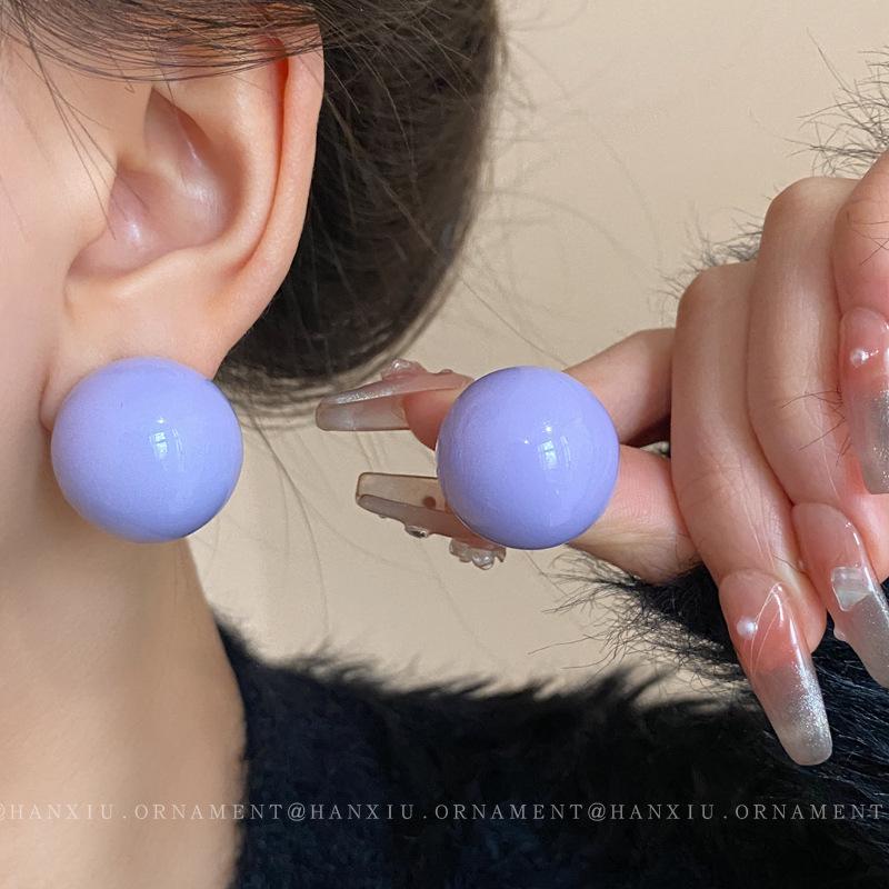 Серьги-пусеты Геометрическая сфера Серебряная игла для женщин - Корейский милый дизайн, Уникальные и универсальные