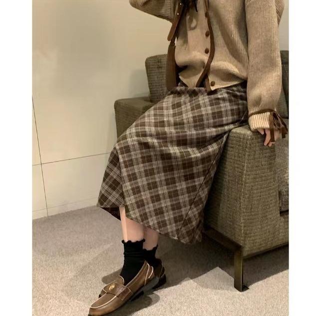 Клетчатая юбка средней длины с флисовой подкладкой - Зимняя коллекция 2025: Универсальная юбка в стиле милк-ти