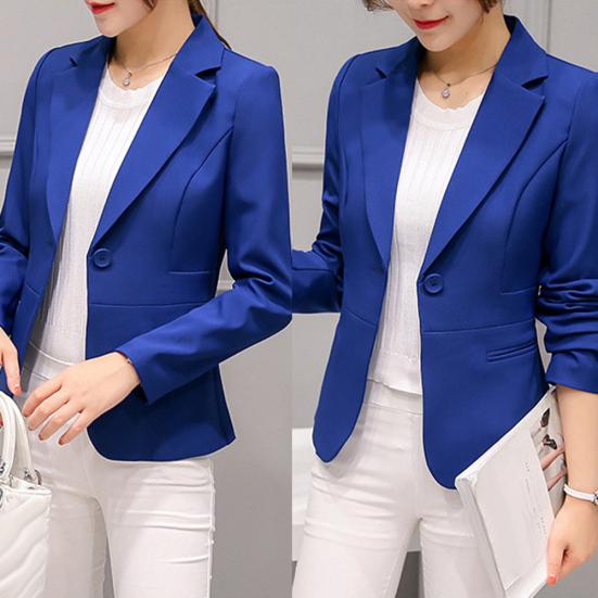 Women One Button Solid Color Lapel Long Sleeve Slim Blazer Coat Suit