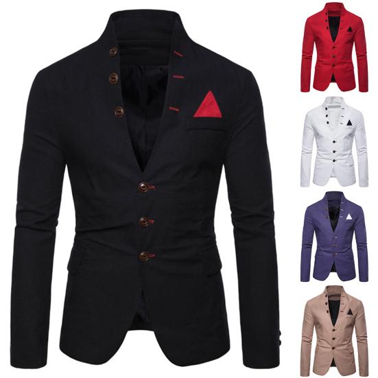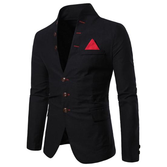 Мужской смокинг с воротником-стойкой и длинными рукавами, пиджак на 3 пуговицах с карманом, приталенный