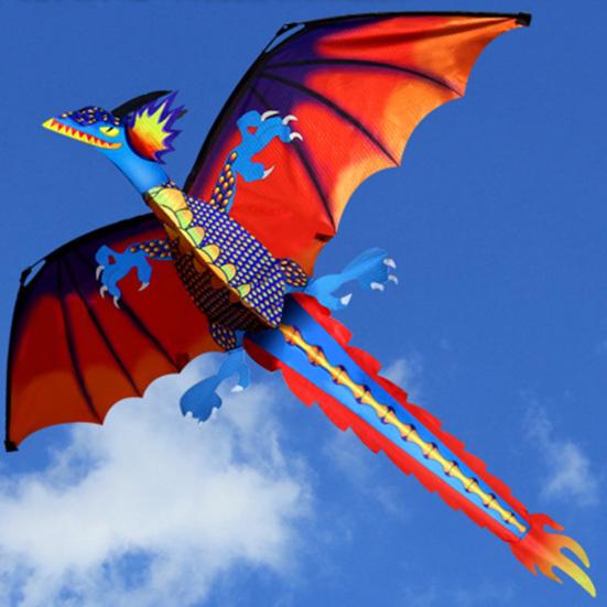 Уличный красочный 3D воздушный змей «Дракон», летающий, со 100-метровой хвостовой линией, для детей