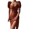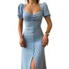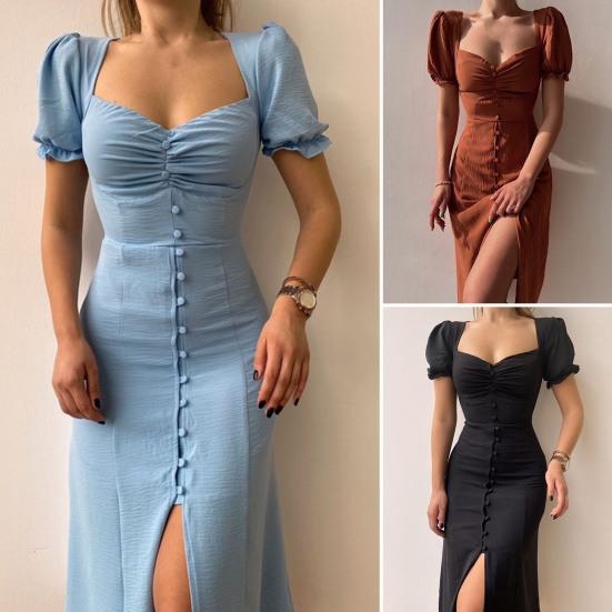Дизайн разделенного подола может визуально сделать вашу ногу полной привлекательной. Женское платье с квадратным воротником низкого кроя может значительно показать вашу сексуальную и полную грудь.