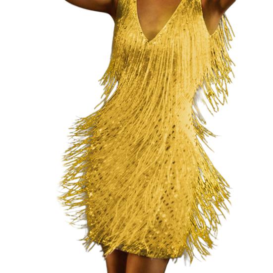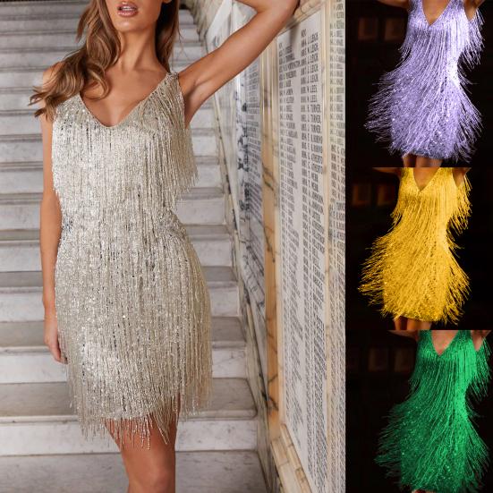 Глубокий дизайн V-образного выреза хорош, чтобы показать вашу сексуальную ключицу и очаровательную линию шеи. Дизайн декора с блестками делает это сексуальное платье придающим нотку элегантности и сладости.