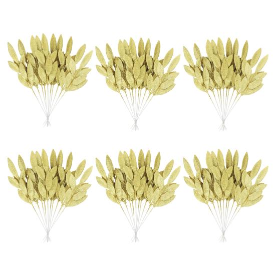 60Pcs Artificial Golden Leaves Fake Plants, Christmas Glitter Leaf Spray Picks — купить товар онлайн с бесплатной доставкой по всему миру!