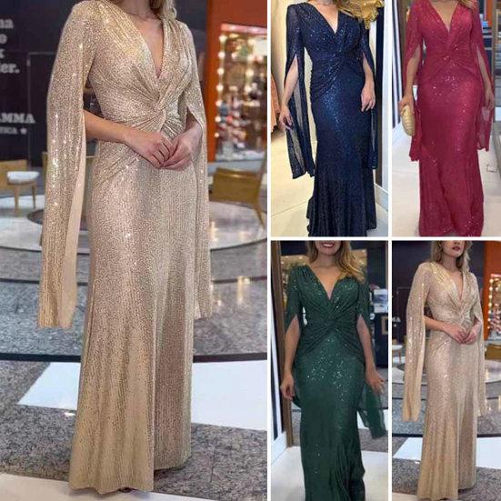 Представляем наше элегантное и очаровательное женское однотонное вечернее платье — идеальное дополнение к вашему гардеробу.. Это платье, изготовленное из высокоэластичного полиэфирного волокна, создает ощущение мягкости и комфорта, которое вам обязательно понравится.. Простой, но стильный дизайн с V-образным вырезом и закругленной талией создает силуэт А-силуэта, который прекрасно подчеркивает вашу фигуру.. Дизайн с пайетками добавляет нотку элегантности, что делает это платье идеальным для любого особого случая.. Собираетесь ли вы на работу, занимаетесь повседневными делами, посещаете вечеринки или коктейльные мероприятия или даже собираетесь на свидание, это универсальное платье макси станет вашим идеальным спутником.. Сочетайте его с сандалиями, небольшими кожаными туфлями, шляпами, сумками или украшениями, чтобы завершить свой элегантный образ.. Не упустите это незаменимое платье, которое излучает стиль и изысканность.