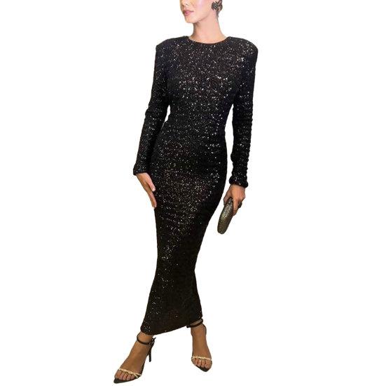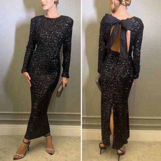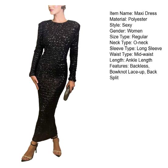 Elegant and stylish: This maxi dress features a round neck, long sleeves, and an open back design to accentuate your figure, perfect for various occasions.