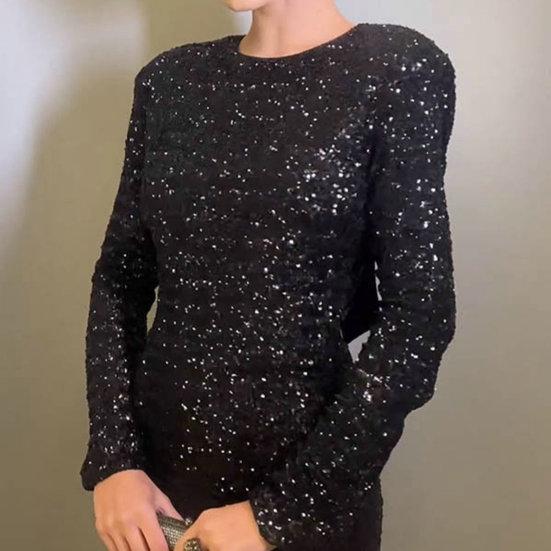 The simple yet chic appearance is adorned with sequin decoration, adding a touch of glamour and sophistication.