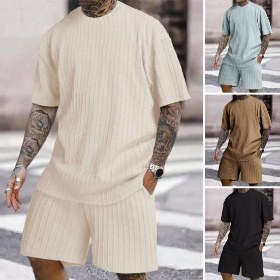2 шт./компл. Мужской спортивный костюм Футболка с коротким рукавом и круглым вырезом Эластичная талия Широкие штанины — купить товар онлайн с бесплатной доставкой по всему миру!