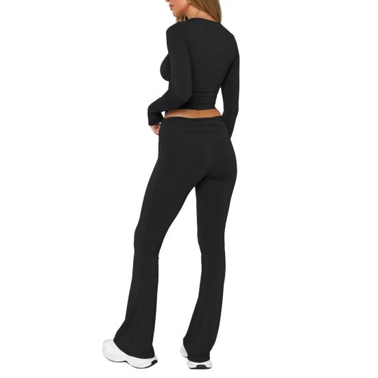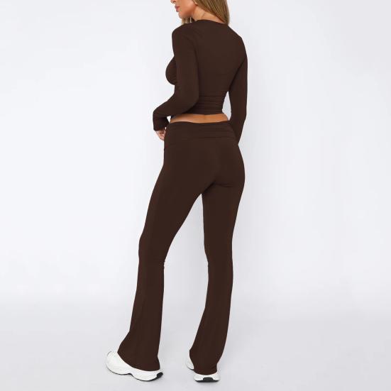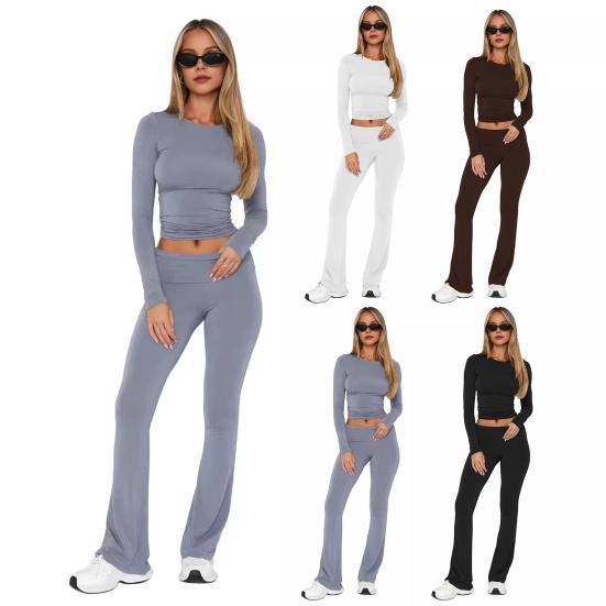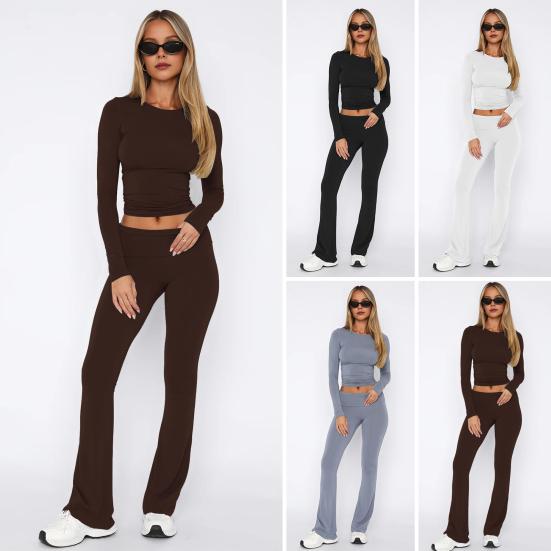 Украсьте свой повседневный гардероб этим универсальным женским повседневным костюмом-двойкой.. Этот стильный и удобный комплект включает в себя топ с круглым вырезом, длинными рукавами и узкие расклешенные брюки.. Однотонный дизайн создает простой, но в то же время шикарный образ, идеально подходящий для ежедневных поездок на работу или отдыха на природе.
