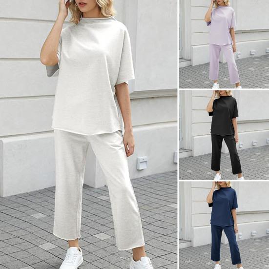 2 шт./компл. Женский комплект топ и брюки с полувысоким воротником, блузка со средними рукавами, широкие