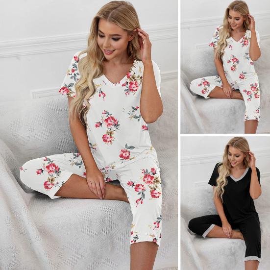 Побалуйте себя комфортом и стилем с нашим модным пижамным комплектом. Этот комплект отличается широкими штанинами и свободным покроем для максимального расслабления.. Футболка с V-образным вырезом и короткими рукавами дополняет принтованные брюки, создавая классический, но модный образ..
