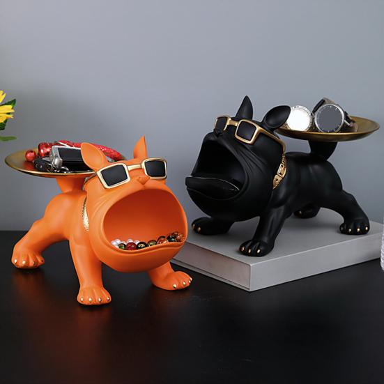 Фигурка собаки с большим ртом, поднос для хранения ключей, мультяшная статуэтка щенка из смолы, украшения