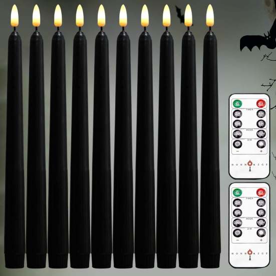 PIPETPET Набор из 10 черных 11-дюймовых светодиодных конусных свечей с восковым покрытием для Хэллоуина