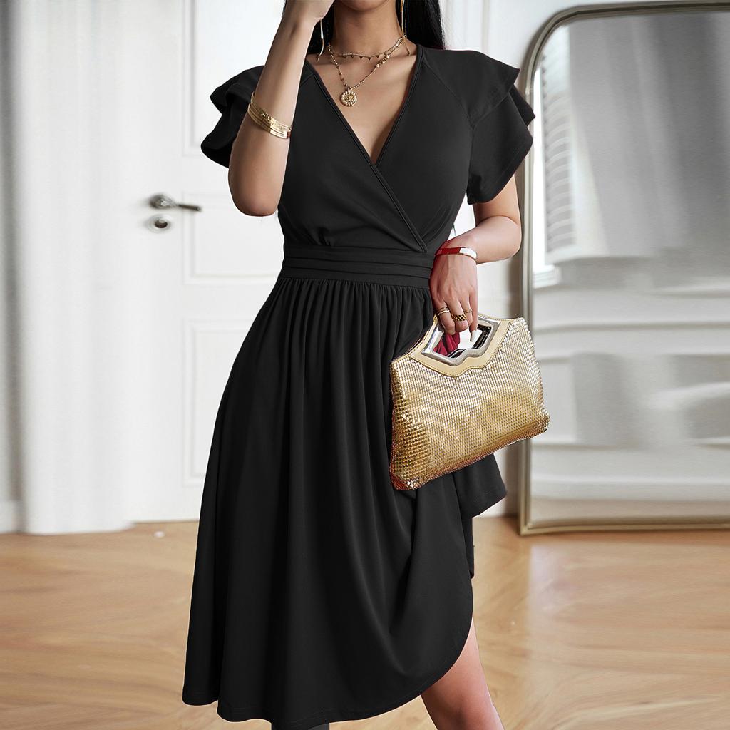 Женское повседневное модное платье в стиле ретро с V-образным вырезом и коротким рукавом