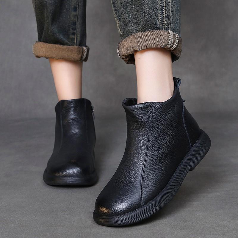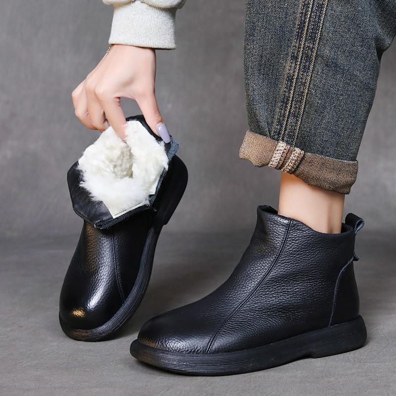 Johnature Женские короткие ботинки из натуральной кожи на мягкой подошве, универсальные, с круглым носком, теплые хлопковые ботинки