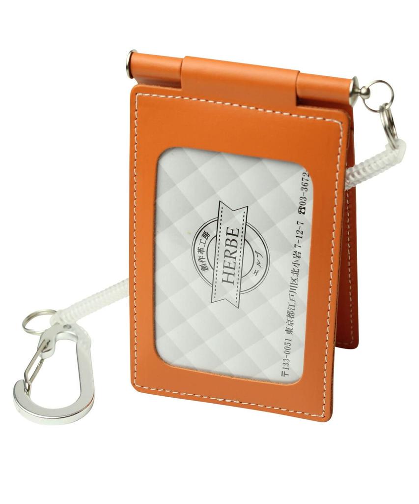 [HERBE] Pass Case, 4-Sided Storage, Cowhide Leather, Coil Strap, Rotating, Made in Japan, Commuter Pass Holder, Orange