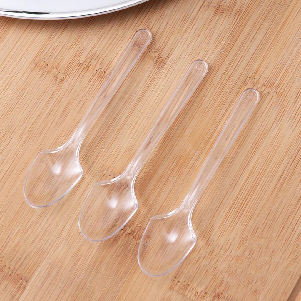 NUOLUX Disposable Plastic Spoons, 100 Pieces, 12cm, Clear, for Ice Cream and Desserts, Perfect for Tasting, Commercial Use
