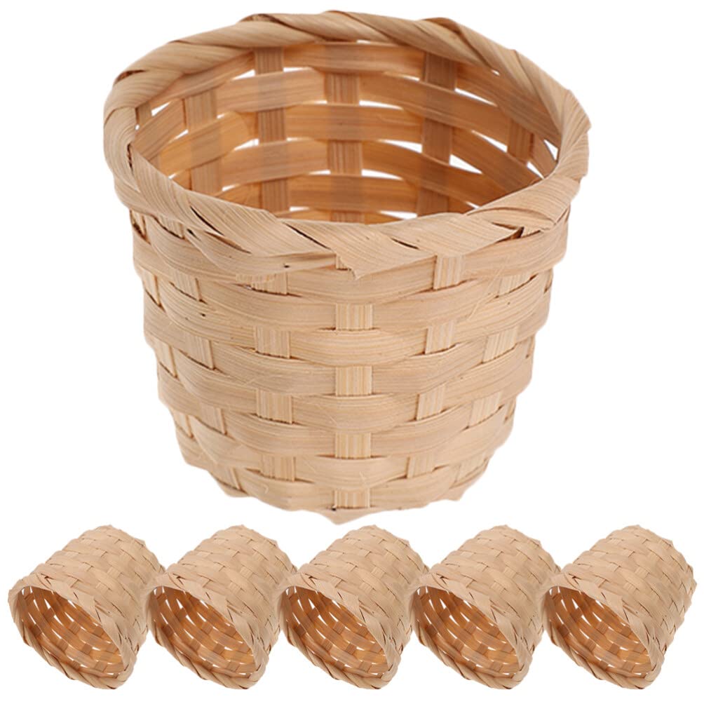 NUOLUX Бамбуковая корзина, Маленькая корзина, Мини-корзина для маленьких цветов, Набор из 6 штук, Бамбук, Фермерский стиль, Подставка для ручек, Шкатулка для мелочей, Контейнер для маленьких игрушек