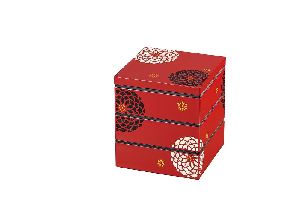 Tatsumiya Hyakuka 15.0mm Square Three-Tiered Box, Red, Size: Approx. W15 D15 H17 54816