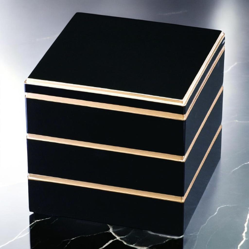 J-kitchens Lacquerware 3-Tier Jubako Box, 6.5 inches, Yamato Kagekura Black with Gold Rim, 19cm, Resin, Made in Japan