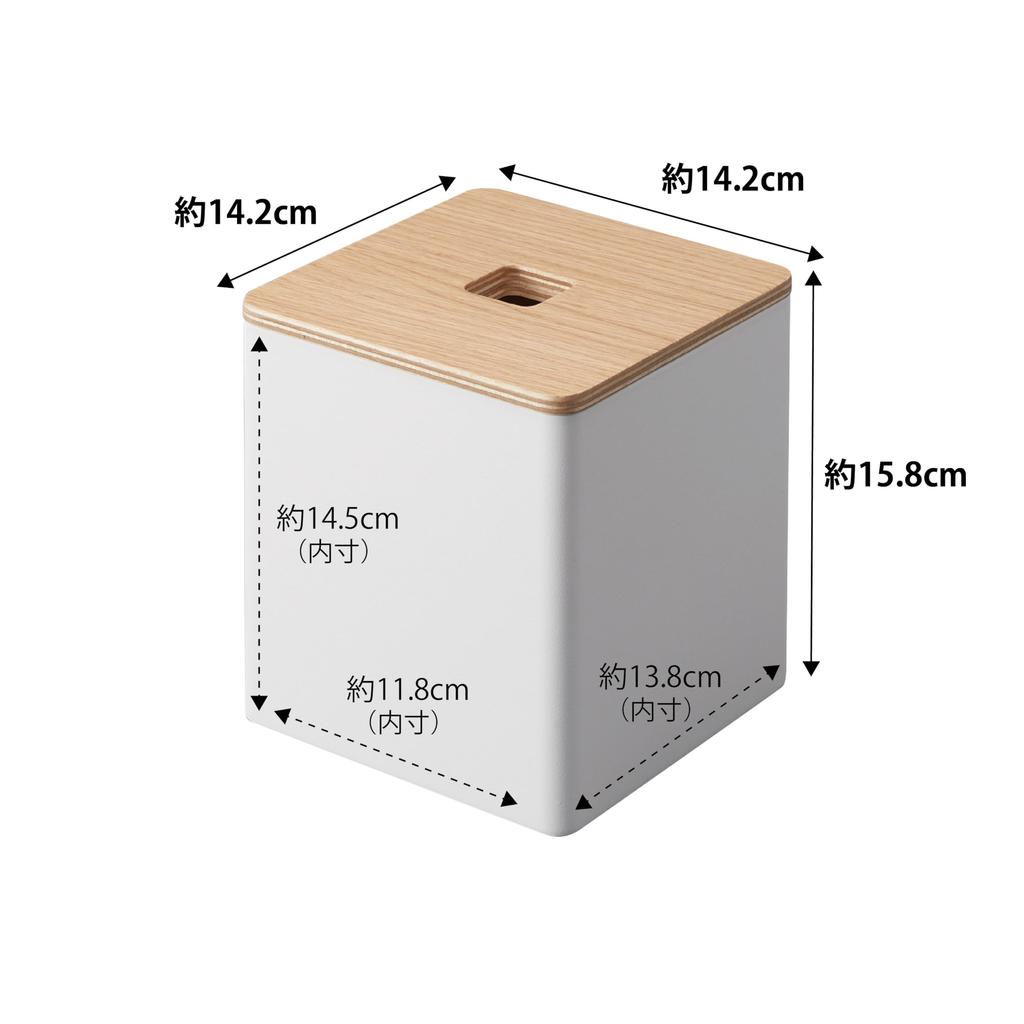Yamazaki RIN Кейс с верхней загрузкой для салфеток и туалетной бумаги, Натуральный, Прибл.. Ш14,2 x Г14,2 x В15,8см, Квадратный, 2002