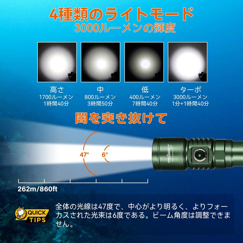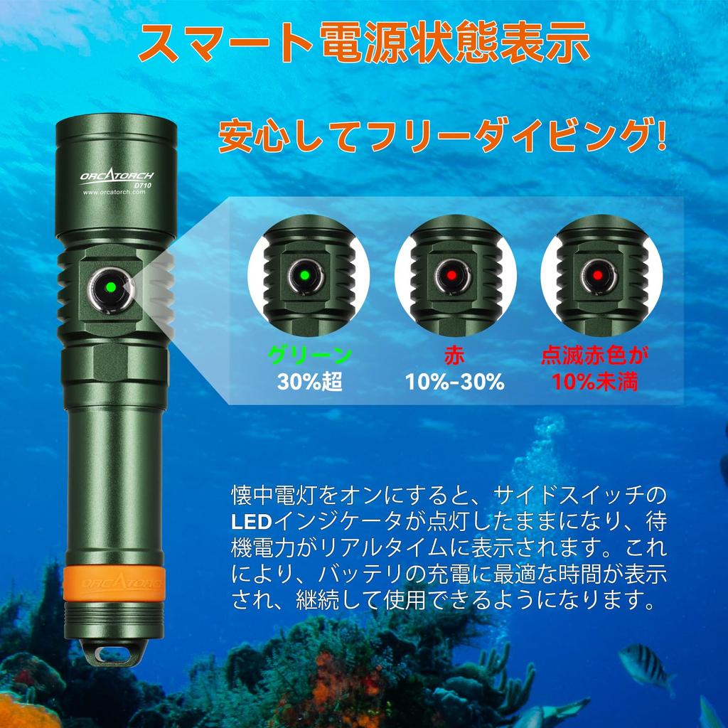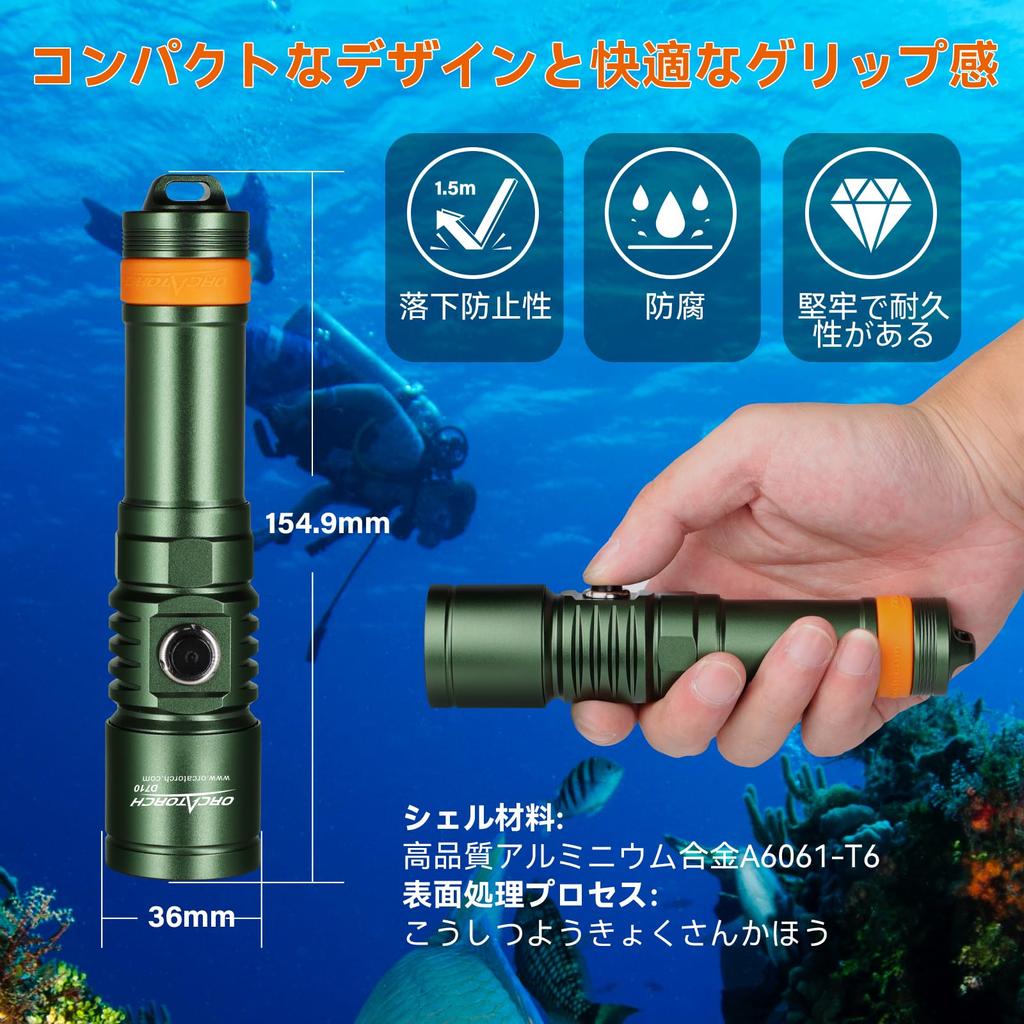 ORCATORCH D710 Diving Light, 3000 Lumens, 6 Degree Narrow Beam, IP68 Waterproof, 150 Meter Scuba Diving Flashlight (Green)
