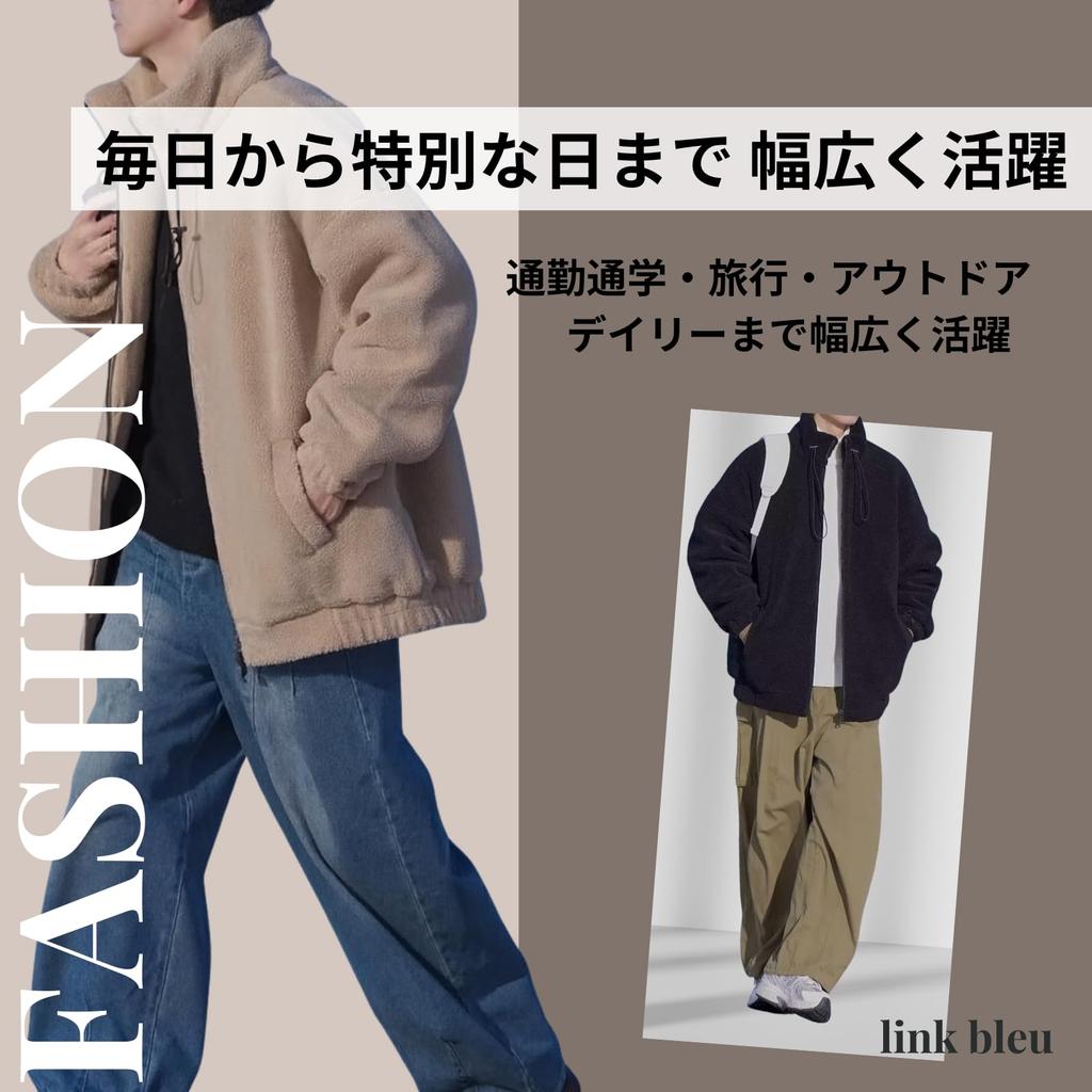 [link bleu] Men's Fleece Boa Jacket, Fall/Winter Outerwear, Zip-Up, High Neck, Warm, Oversized, Casual, Stylish (Size L, Black)