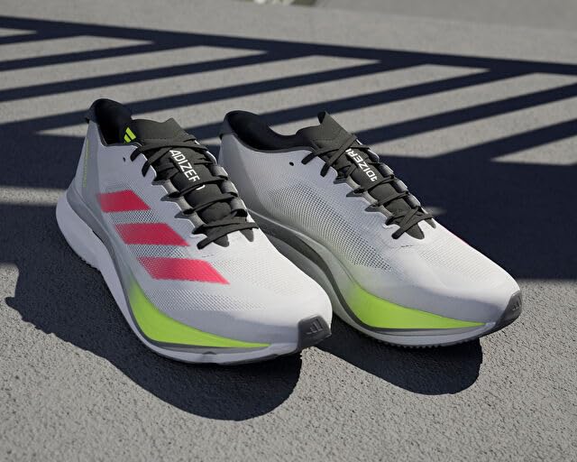 Кроссовки для бега Adidas adizero Boston 12, Унисекс, Взрослые, MDF81, Серый/Ярко-красный/Ярко-лимонный (JI4472), Размер 26,5см