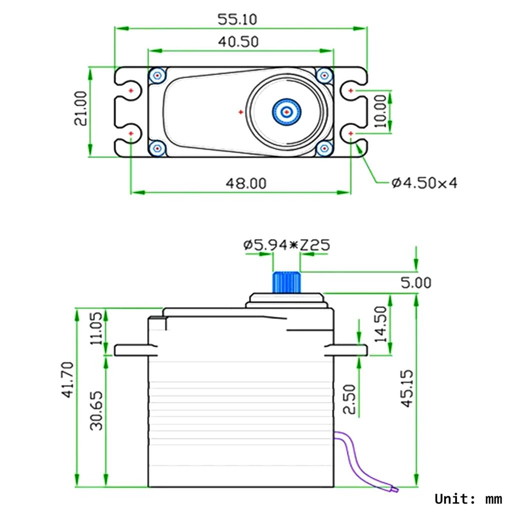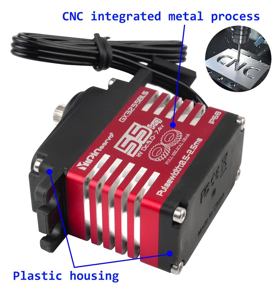 DIYmall GX3255BLS Digital Servo, 7.4V, 55KG High Torque, Full Metal Helical Gear Brushless Motor, IP68, for RC Robotic Cars (180°)