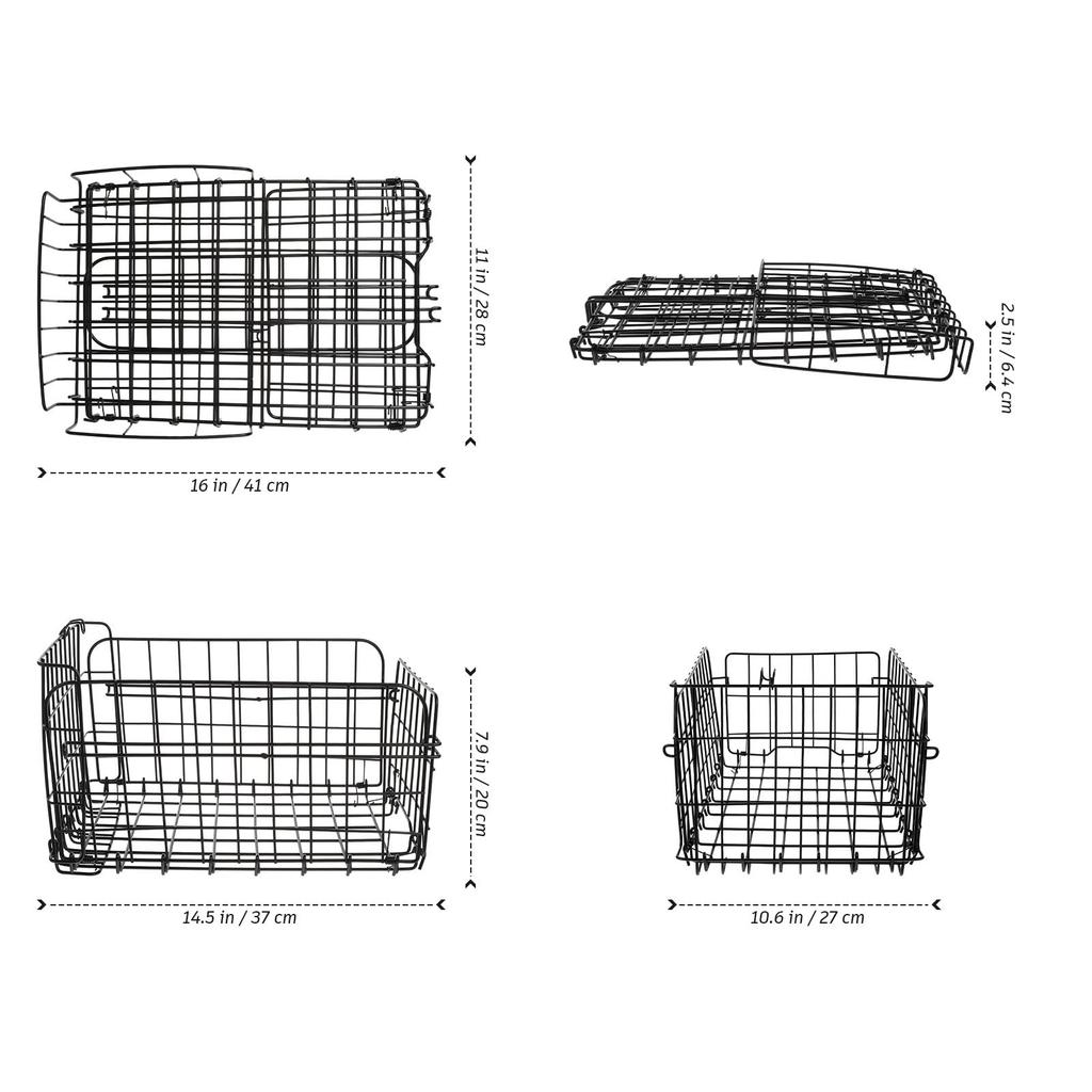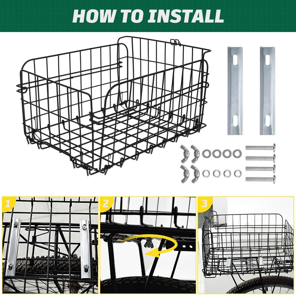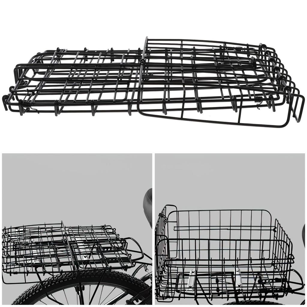 LIOOBO Folding Bicycle Basket, Black, 14" x 11" x 8", Steel Construction, Stable Design, Large Capacity Storage for Commuting, Shopping, and More
