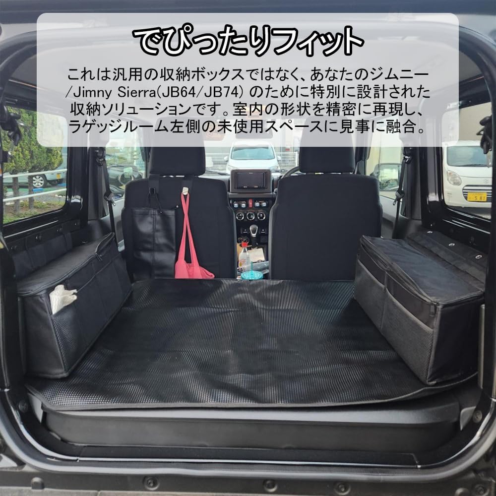 [Custom-designed for a perfect fit] This is not a generic storage box, but a storage solution specifically designed for your Jimny/Jimny Sierra (JB64/JB74). It precisely replicates the shape of the interior and blends seamlessly into the unused space on the left side of the luggage compartment.
