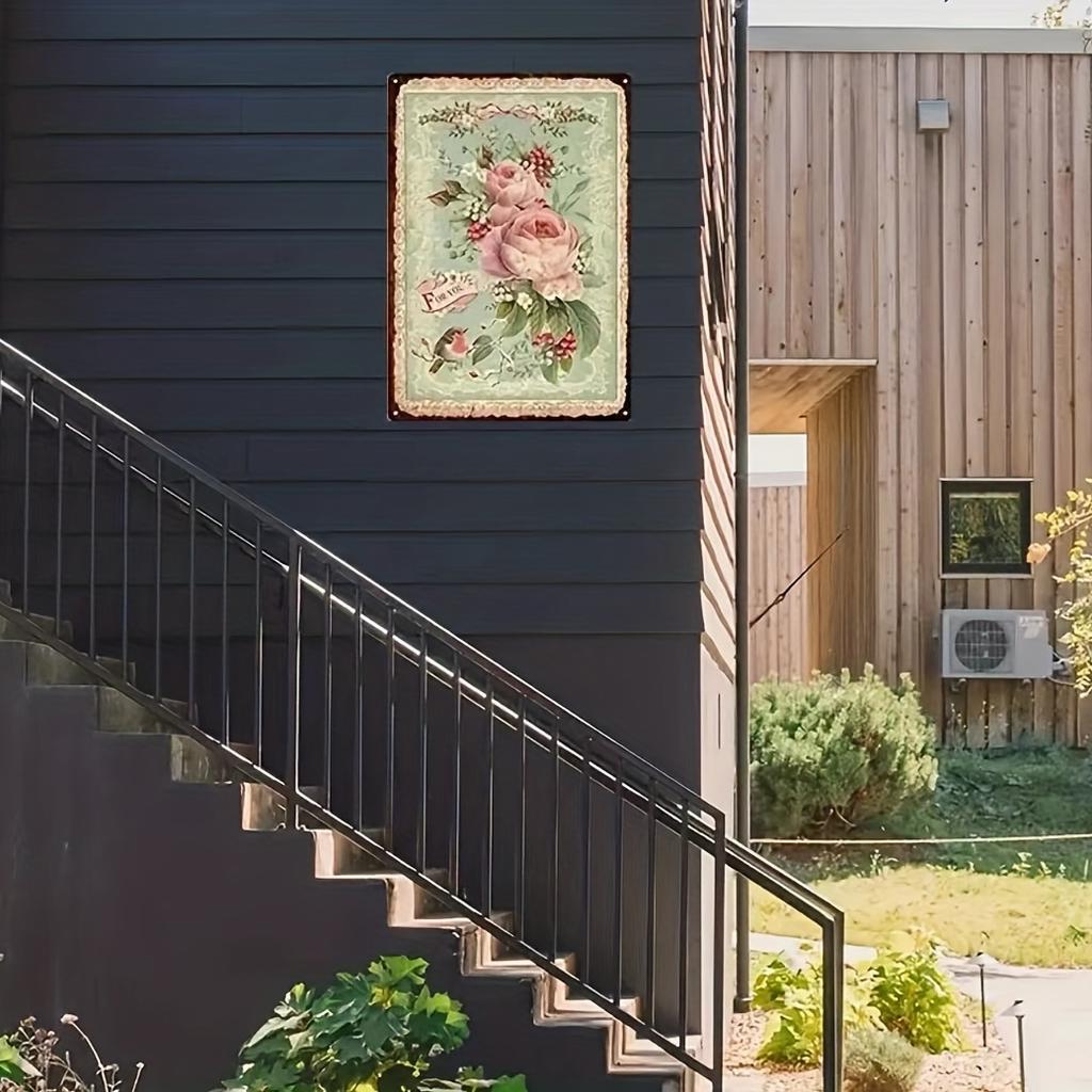 Винтажная металлическая табличка с изображением розы - Пасторальный художественный настенный декор с розовыми розами и зелеными листьями, 8x12 дюймов, Идеально для дома