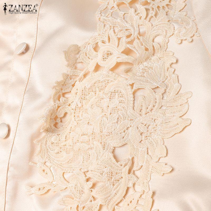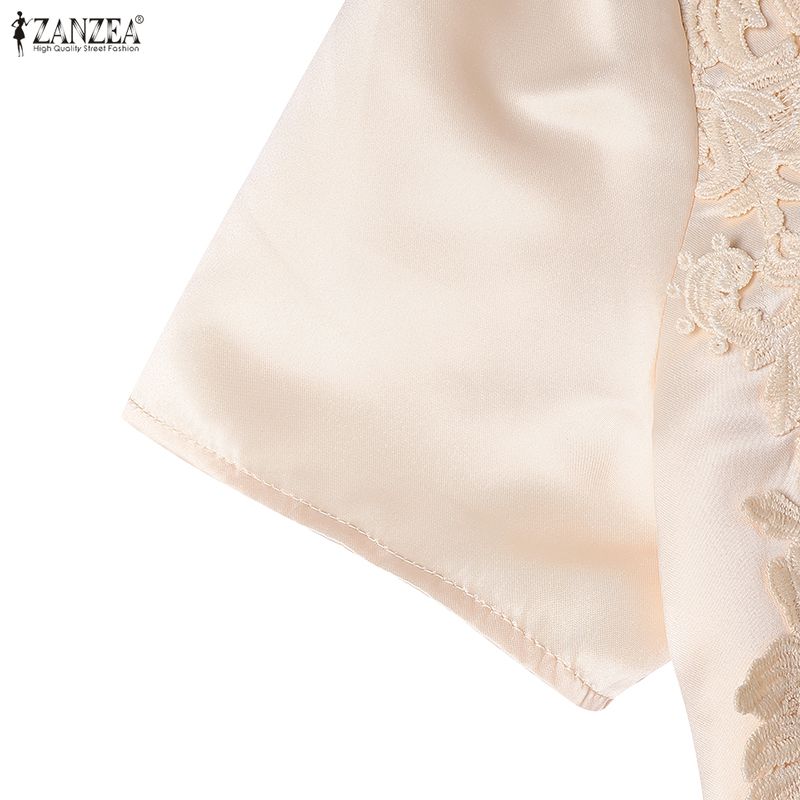 ZANZEA Женское повседневное платье с круглым вырезом, коротким рукавом, кружевной вязкой крючком и лоскутным узором