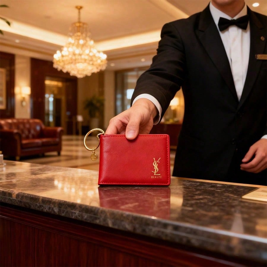 Красный кожаный картхолдер с кольцом для ключей, модный держатель для кредитных и ID-карт, подходящий для женщин