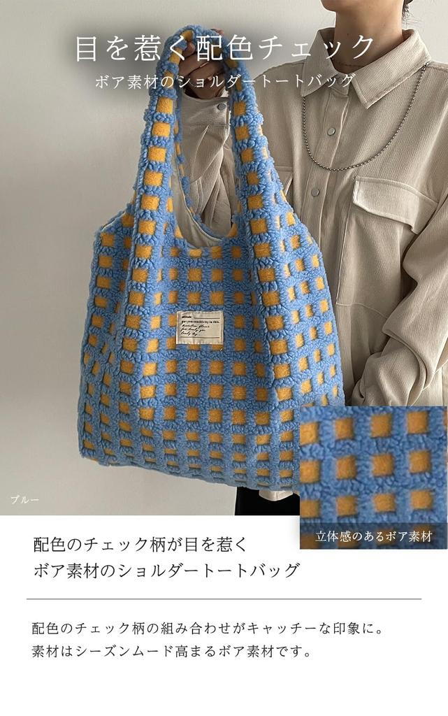 210NOUVE Plaid Boa Shoulder Bag, Yellow, Large Capacity Tote Bag [55K210G352-17]