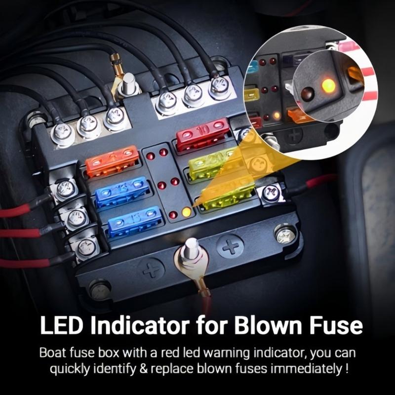 Fuses Block, 36V Fuses Box Holder with Waterproof Cover, Circuits Fuses Panel with Negative Bus for Car Boats