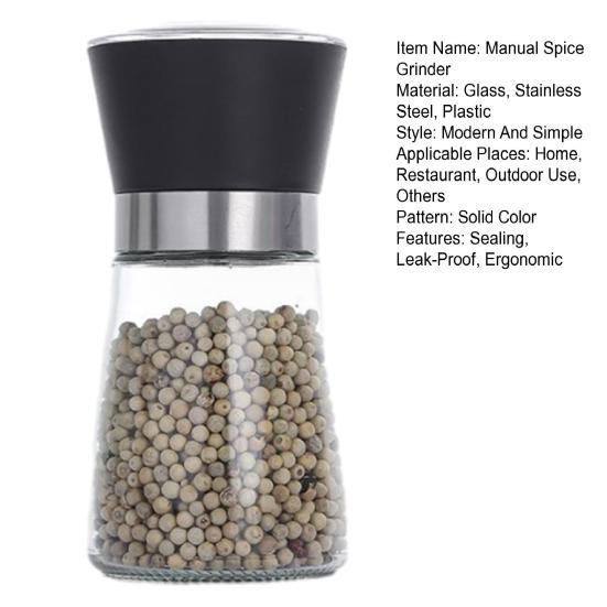 Стильная и прочная конструкция: Изготовленная из высококачественного стекла и дополненная матовой нержавеющей сталью или пластиком, эта ручная мельница для специй сочетает в себе современную эстетику и долговечность.. Коррозионностойкие материалы обеспечивают легкую очистку и стабильную работу, что делает его надежным дополнением к любой кухне.