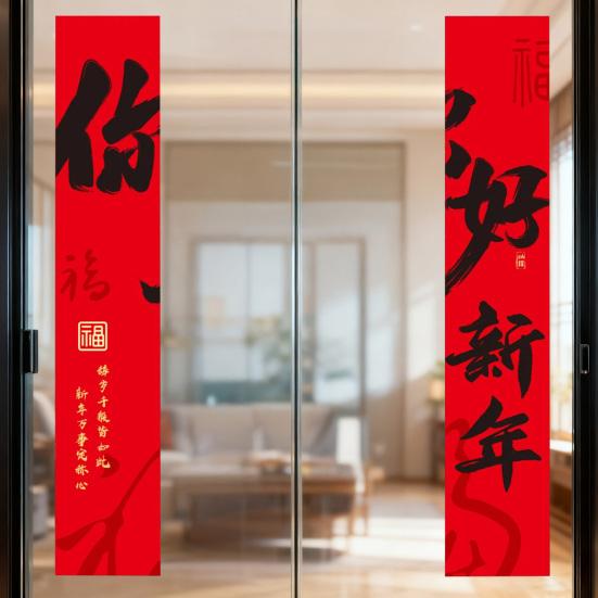 Многоязычные благословения сочетают английские фразы, такие как С НОВЫМ ГОДОМ и УДАЧИ, с классическими китайскими парными надписями, смешивая традицию с современной эстетикой.. Этот декоративный материал, удобного и практичного размера, идеально подходит для использования на открытом воздухе, домашнего декора, фестивалей, вечеринок, офисов, подарков и общежитий.