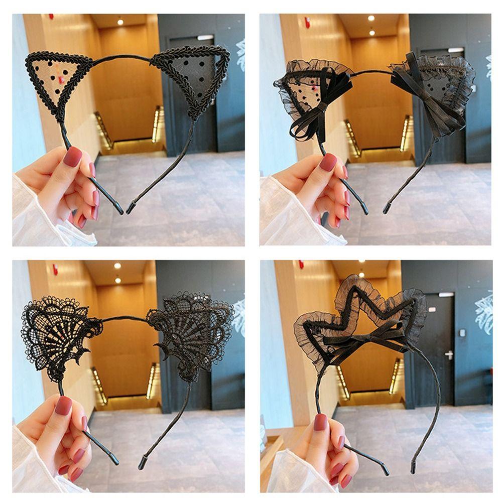 Lace Large Bow Hair Hoop Polka Dot Headwear Retro Cat Ear Hair Band