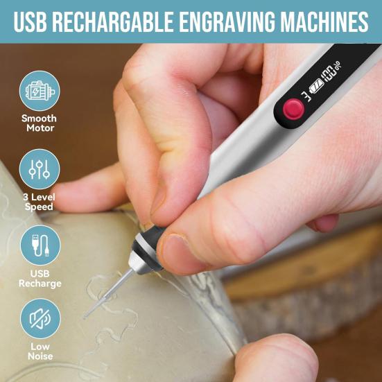 Эргономичная ручка с резиновым покрытием для комфорта и точности: Разработанный для снижения усталости рук при длительном использовании, легкий и хорошо сбалансированный корпус обеспечивает надежный захват.. Это обеспечивает точный контроль при выполнении детальных задач, таких как матование кривых или тонкая гравировка.