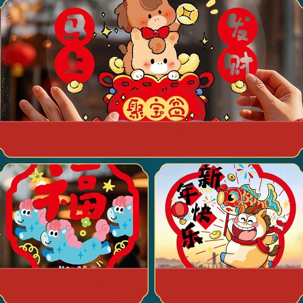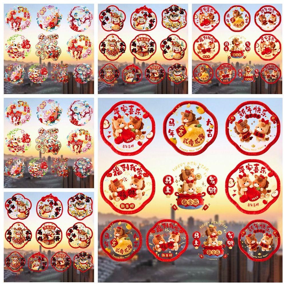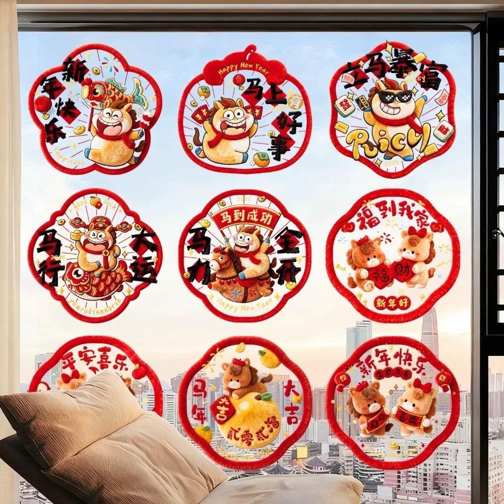 5D Plush Glass Electrostatic Film Year of Horse PVC Flat Festival Stickers Household