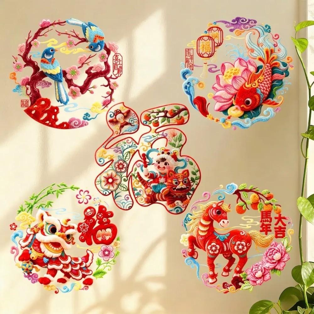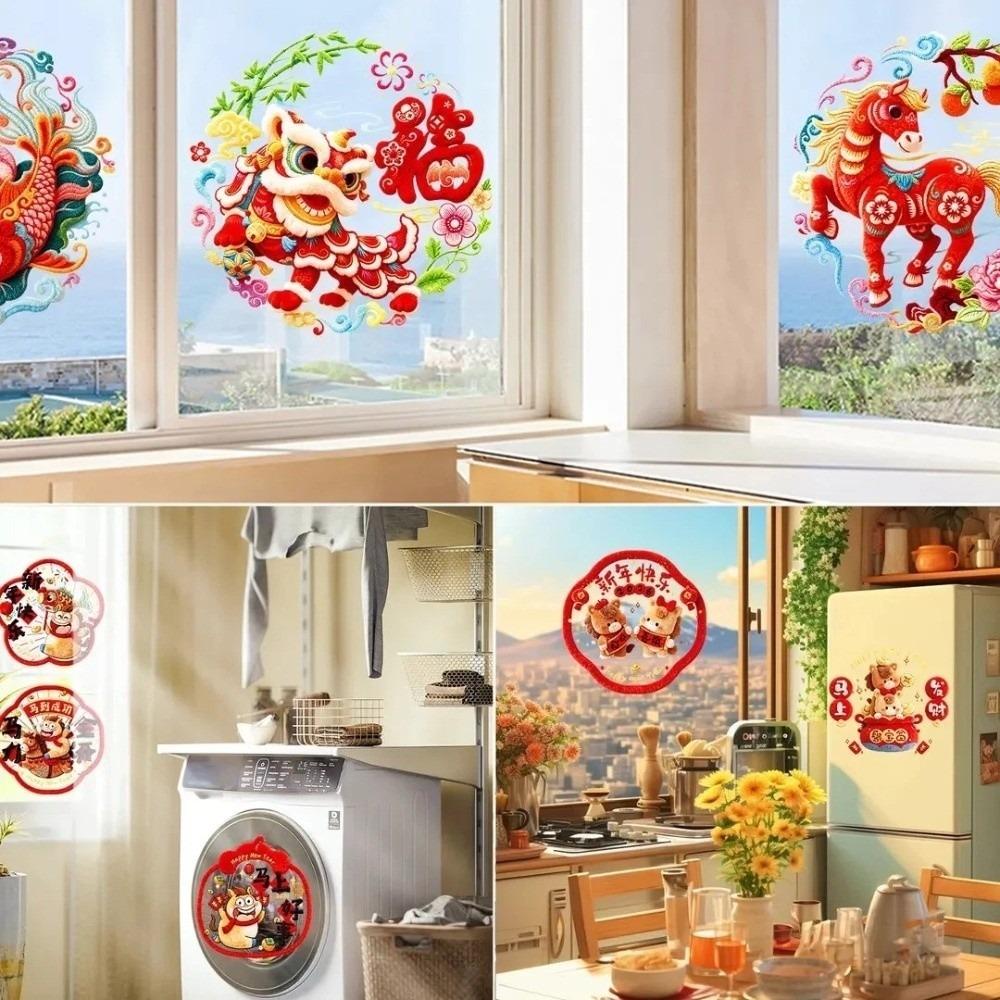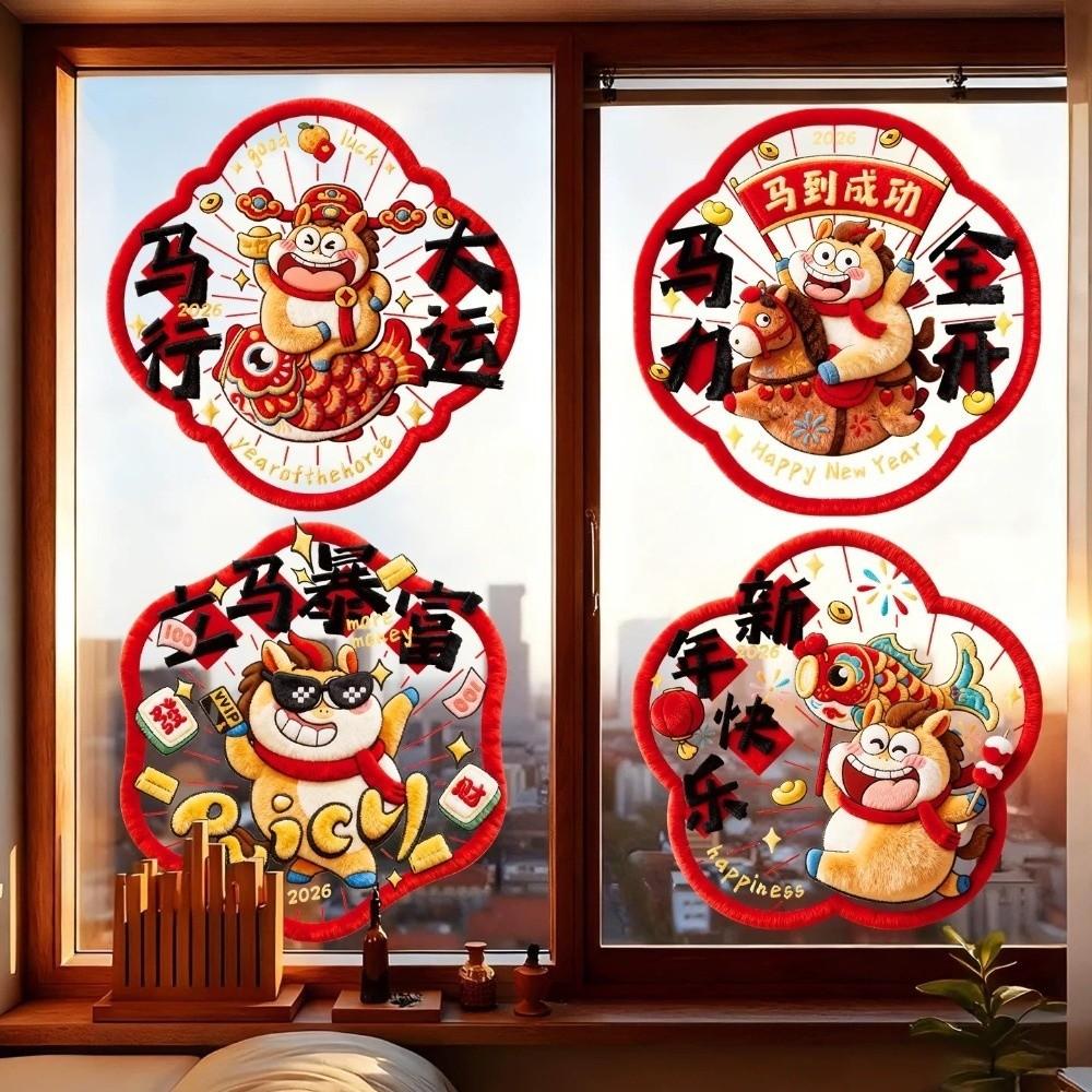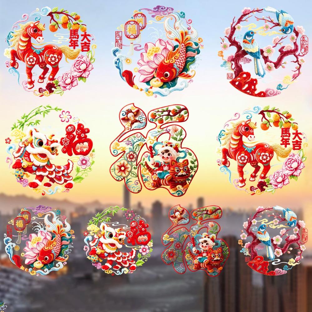 5D Plush Glass Electrostatic Film Year of Horse PVC Flat Festival Stickers Household