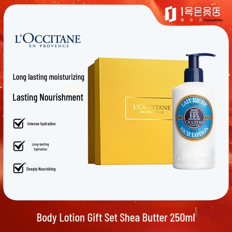 Indulge in the luxurious L'OCCITANE Shea Butter Body Lotion Gift Set. This 250ml body lotion, enriched with 15% shea butter, provides intense hydration, nourishment, and leaves skin feeling soft and smooth with a long-lasting fragrance. Perfect as a thoughtful gift, it comes beautifully packaged with a gift bag.