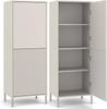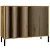 KEY PRODUCT FEATURES:Four independent door fronts:two smooth and two grooved, click-open thanks to the TIP-ON systemModern front design:doors that close inward create a coherent and elegant shape.8 storage spaces:divided by large-capacity shelvesMetal legs: height 13.5 cm — stability and lightness of the structureModern style: suits Scandinavian, loft, and industrial interiorsEasy assembly: clear instructions and a complete set of accessories included IncludedDIMENSIONS:Width: 103.5 cmHeight: 147.5 cmDepth: 40 cmMATERIALS VERSIONS:Body: 16 mm thick laminated chipboardFront (grooved door):18 mm thick melamine-faced MDF board, milled and foil-coatedFront (smooth door):16 mm thick laminated chipboard mmLegs: Metal/steel, 13.5 cm highHinges: Metal/steel with fine adjustmentKAMARO Collection - Create a Cohesive InteriorThe KAMARO 4DK SLIM/SMOOTH ARTISAN OAK display cabinet goes perfectly with other furniture from the KAMARO collection, such as the TV stand, chest of drawers, and other display cabinets. Create harmonious sets tailored to your needs and lifestyle!