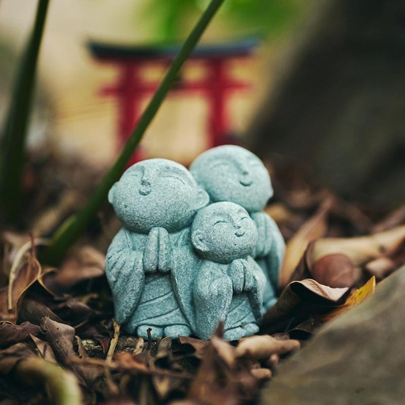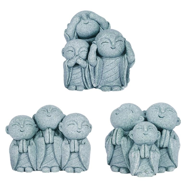 Сад Миниатюрная Скульптура Монаха Песчаник Молящиеся Будды Фигурка Аквариумы Декор для Полки Стола