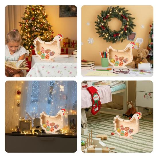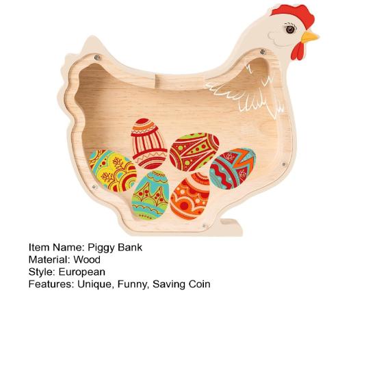 Эта очаровательная копилка-цыпленок изготовлена из высококачественной каучуковой древесины, имеет гладкую полированную поверхность и мелкую текстуру для долговечности и легкого использования.. Благодаря компактному размеру он идеально подходит для письменных столов, книжных полок или прикроватных тумбочек, побуждая детей легко копить деньги.. Прозрачные панели позволяют детям визуально отслеживать свои сбережения, превращая процесс в веселое и познавательное занятие..