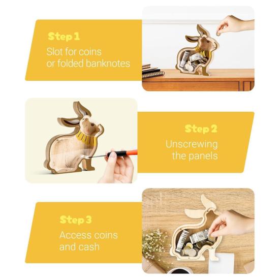 Продуманный подарок на разные случаи жизни: Изготовленная вручную с заботой и вниманием к деталям, эта деревянная копилка станет значимым подарком на дни рождения, праздники, Рождество или особые вехи.. Его сочетание практичности и очарования вдохновляет детей развивать хорошие сберегательные привычки, служа при этом памятным подарком, который они будут ценить долгие годы.