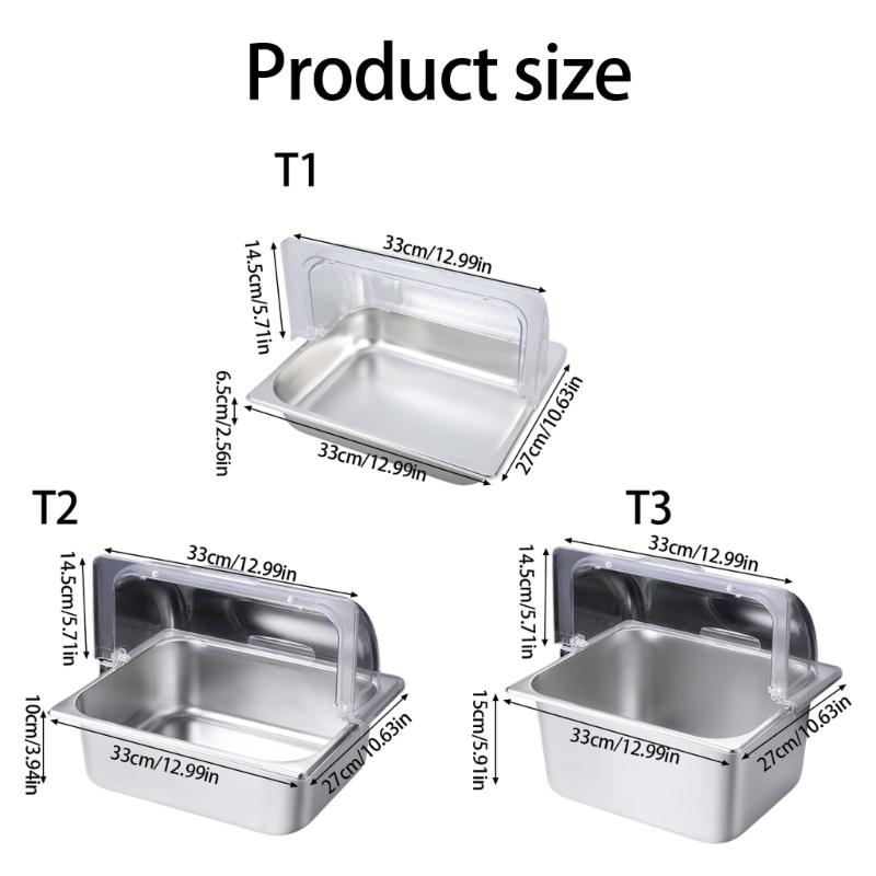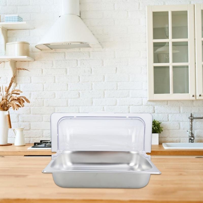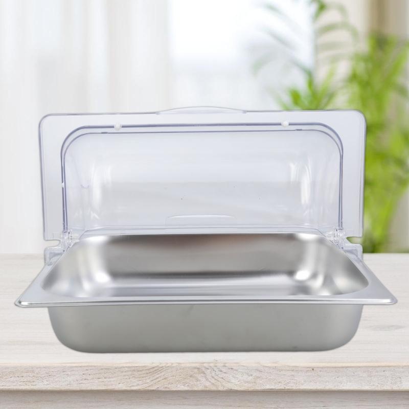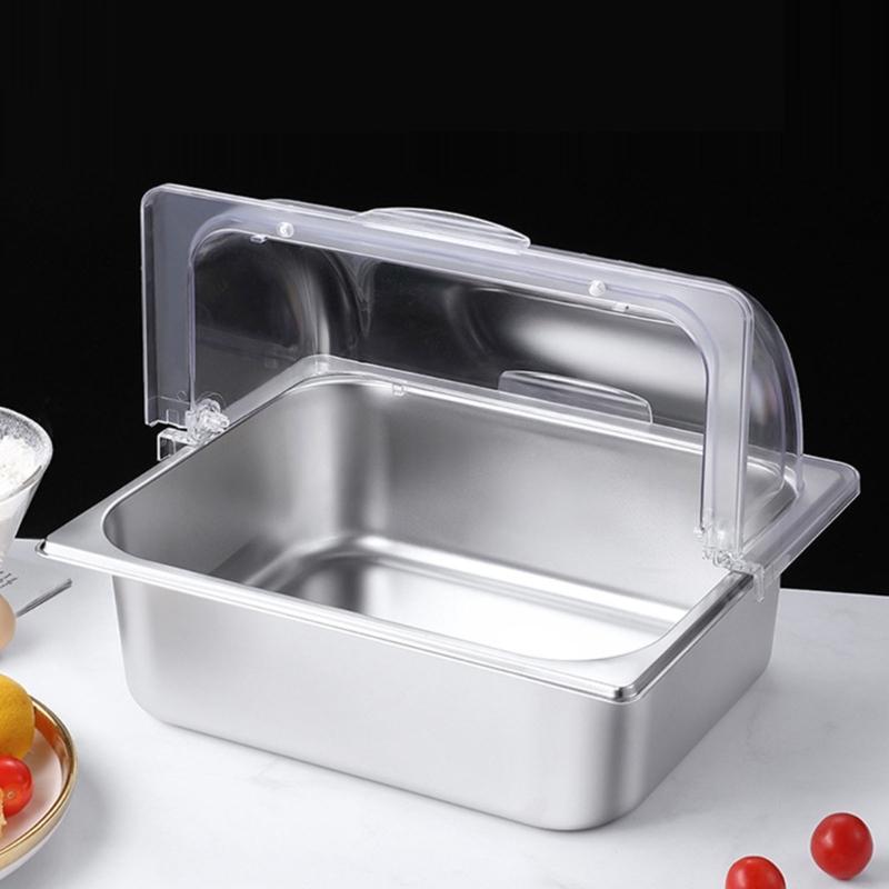 Clear Cover Stainless Steel Serving Pan Buffet Food Presentation Tray Condiment Dispenser for Restaurant Home Use