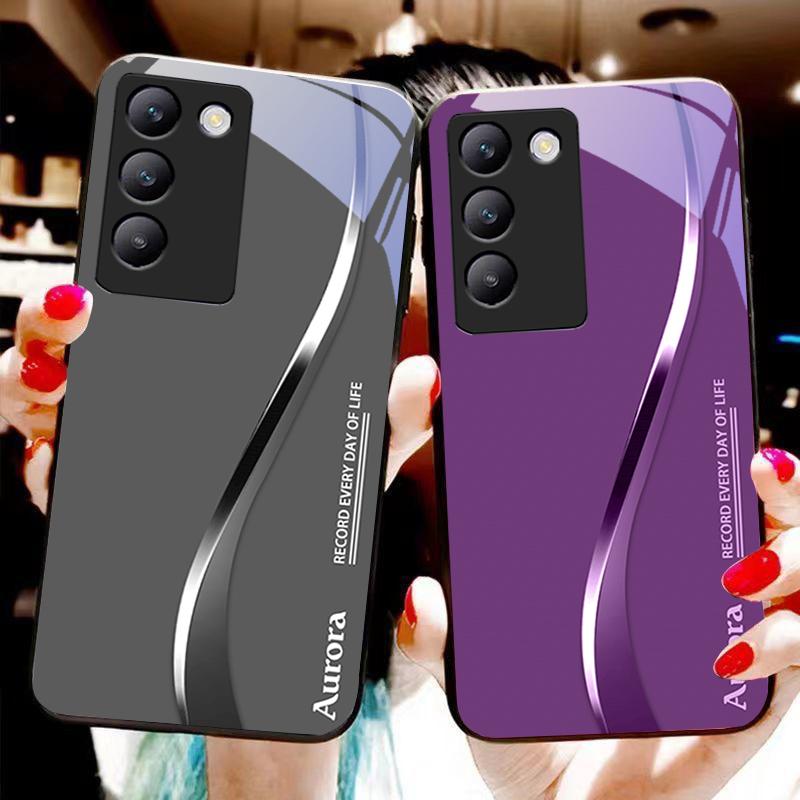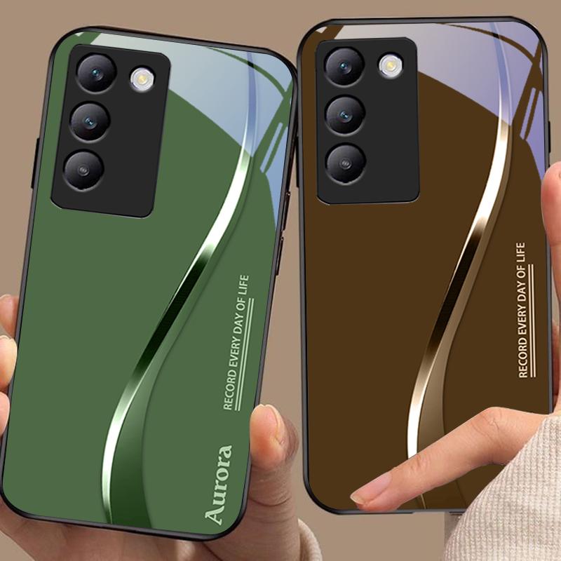 Двухцветные полосы для Y72 33S 11 03 36 96 Lite 35 16 Iqoo 12 V40 SE 5G 29 40 21 30 X80 Pro Vivo Чехол для телефона из закаленного стекла Черный